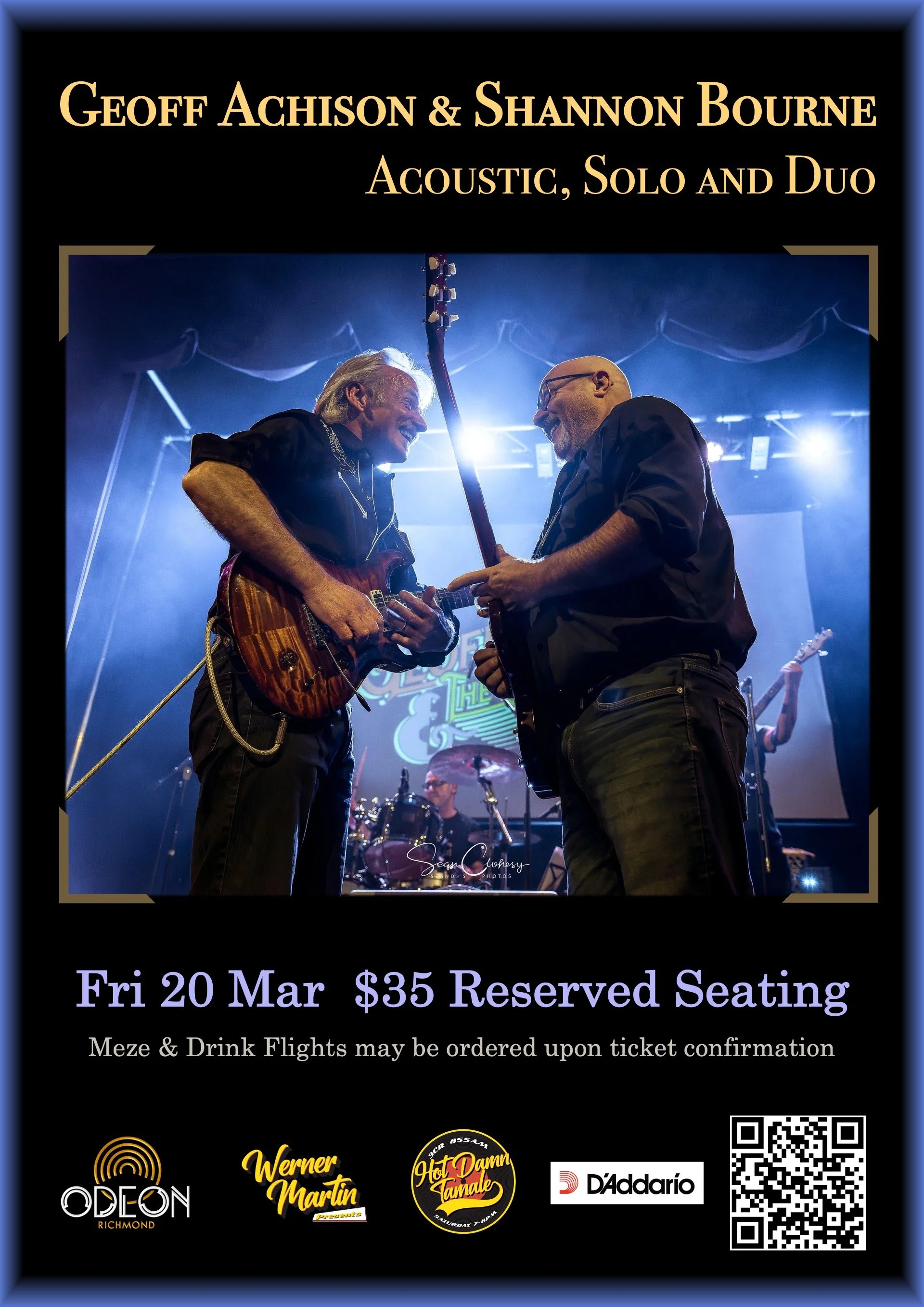 Fans will be familiar with Shannon’s impressive career through his work with the great Chris Wilson, Russell Morris, Broderick Smith, Don Walker and lately with award-winning blues band Checkerboard Lounge. Together, Geoff and Shannon share a passion for the guitar and have a history of electrifying on-stage collaborations, as well as their award-winning ‘Box Of Blues’ album. (Recorded with Chris Wilson)