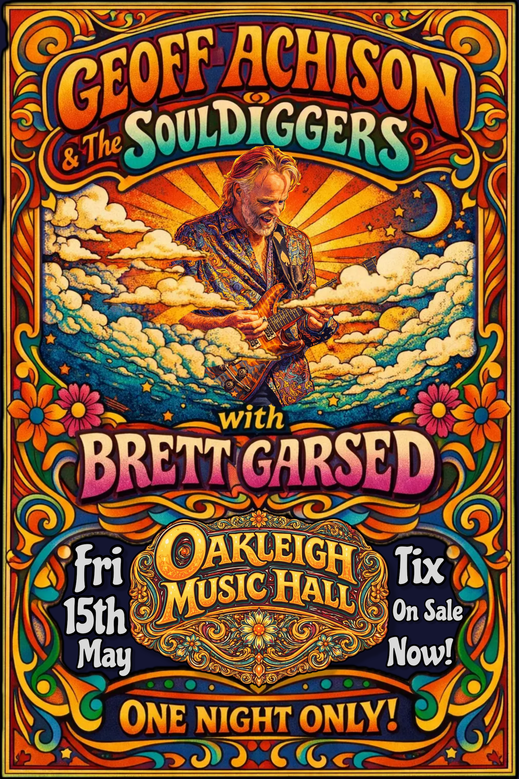Melbourne’s own blues-rock powerhouse group Geoff Achison & The Souldiggers bring their electrifying live show to Oakleigh Music Hall on Friday May 15th for a special hometown send-off. This will be Geoff’s final Melbourne performance before heading to the UK, and the band is set to deliver a night to remember!